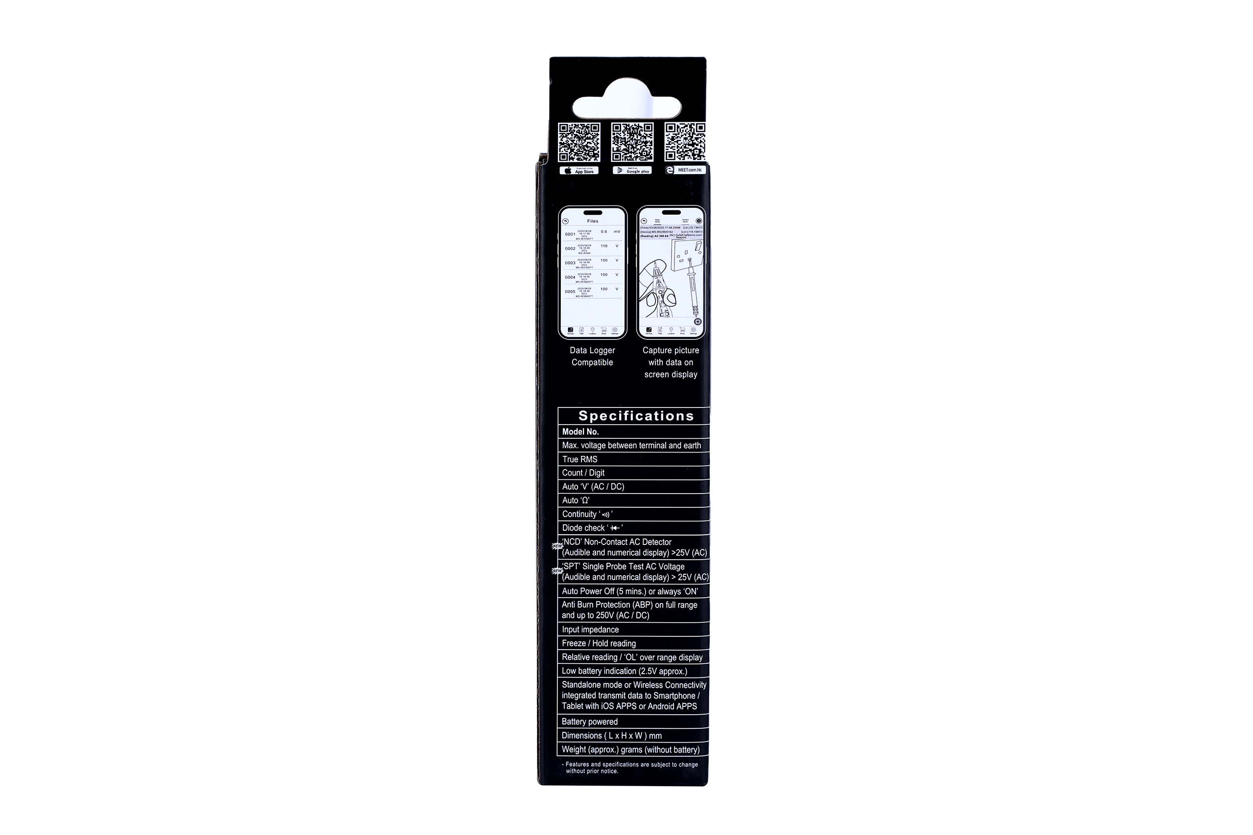- Auto Measurement (AC/DC) (‘V’, ‘Ω’)