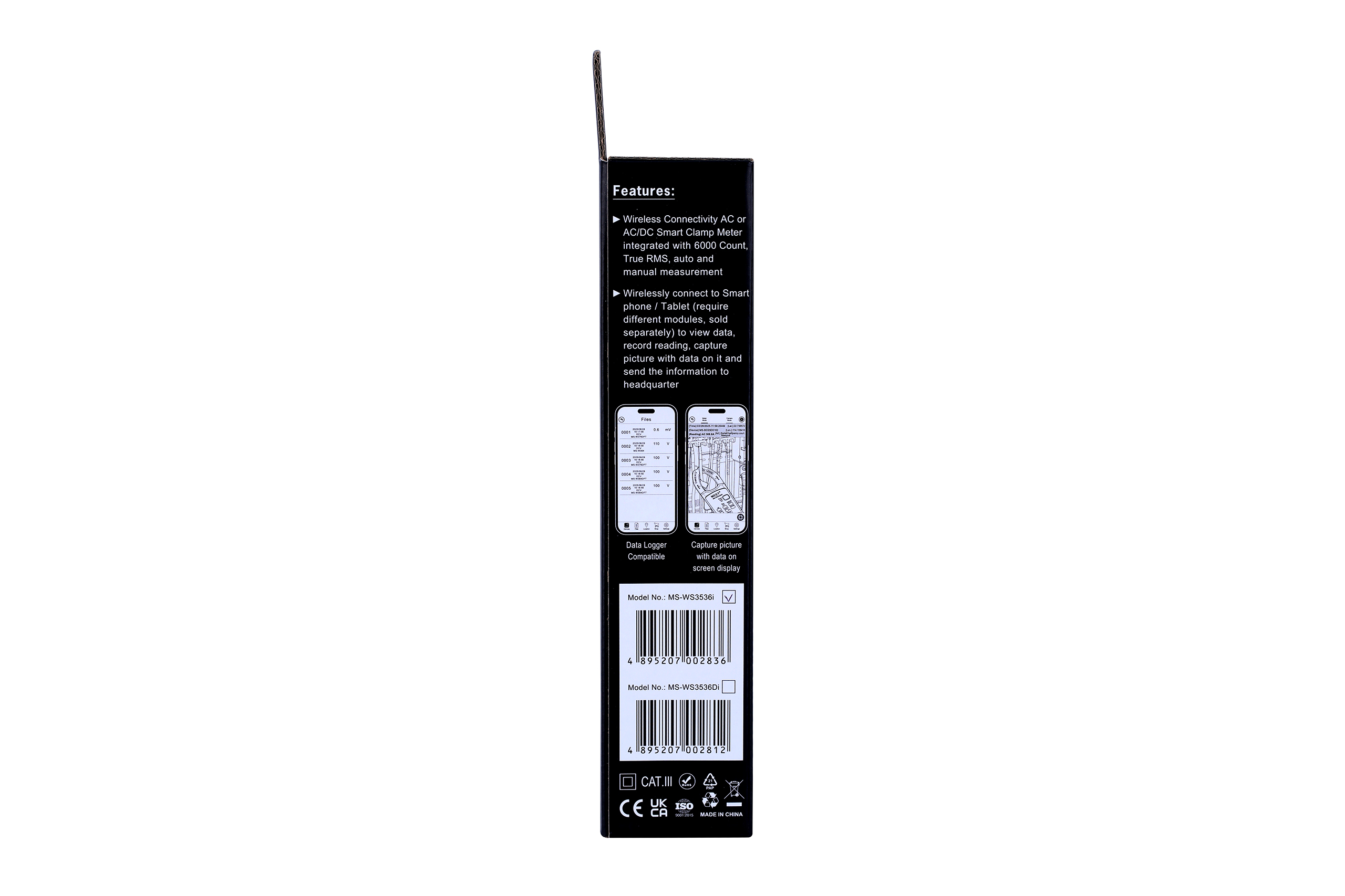 Wirelessly connect to Smartphone/Tablet (require different modules, sold separately) to view data, record reading, capture picture with data on it and send the information to headquarter.