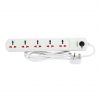 4 Way Universal Power Extension Socket With Master Switch, Single Indicator, 1.00mm² Cable 2M & 13A Fused Plug